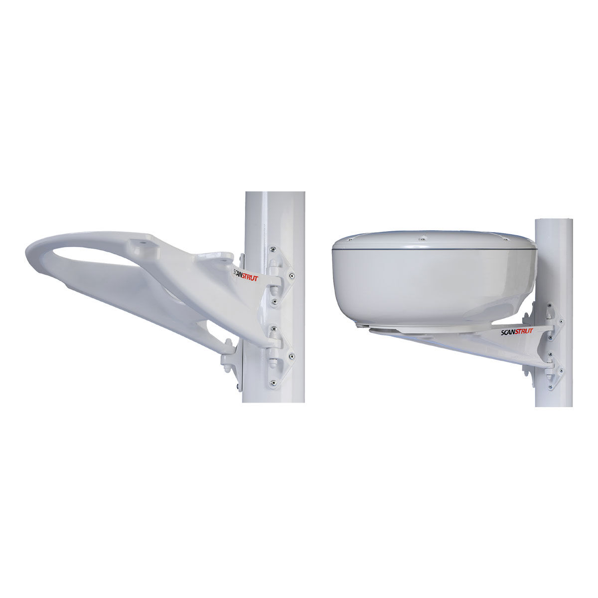 For radomes and small satcom/TV antenna. Still the first choice for boat owners the world over, Scanstrut leads the way with a new generation of Mast Mounts. The larger mounting foot is stronger, stiffer and now even easier to fit.\n\nFeatures\n• Universal and compact mounting\n• Strong fixing\n• Safety wire kit\n• Recommended by and compatible with Humminbird, Garmin, Raymarine, Furuno and Navico