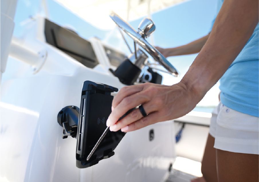 12/24V and IPX6 waterproof, Edge is perfect for boat consoles tight on space or any vehicle working outside in the elements, with simple one-handed operation you can easily dock and instantly start charging your phone. No cable required.