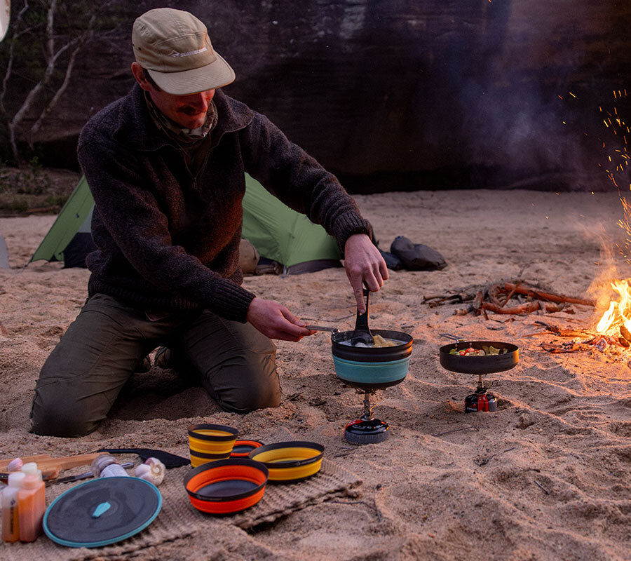 Sea to Summit pioneered collapsible cookware and dinnerware - this set takes light & compact, functional camp kitchen gear to a new level. Made with EU/Japanese food-grade silicone and a hard anodised aluminium base for rapid heat transfer, the 2L Frontier Collapsible Pot features the Click-Safe handle for secure handling and pouring. Rotate the handle to secure the lid and the tableware nested inside. The collapsible Frontier Bowls and Cups are as ergonomically functional as they are light. Glass-reinforced nylon rims make them easy to hold; silicone-rubber sidewalls have been engineered for perfect compactibility, and the curve between the sidewalls and base of the bowls harmonises with Sea to Summit spoons and sporks. Ideal for those with large appetites and limited storage space.