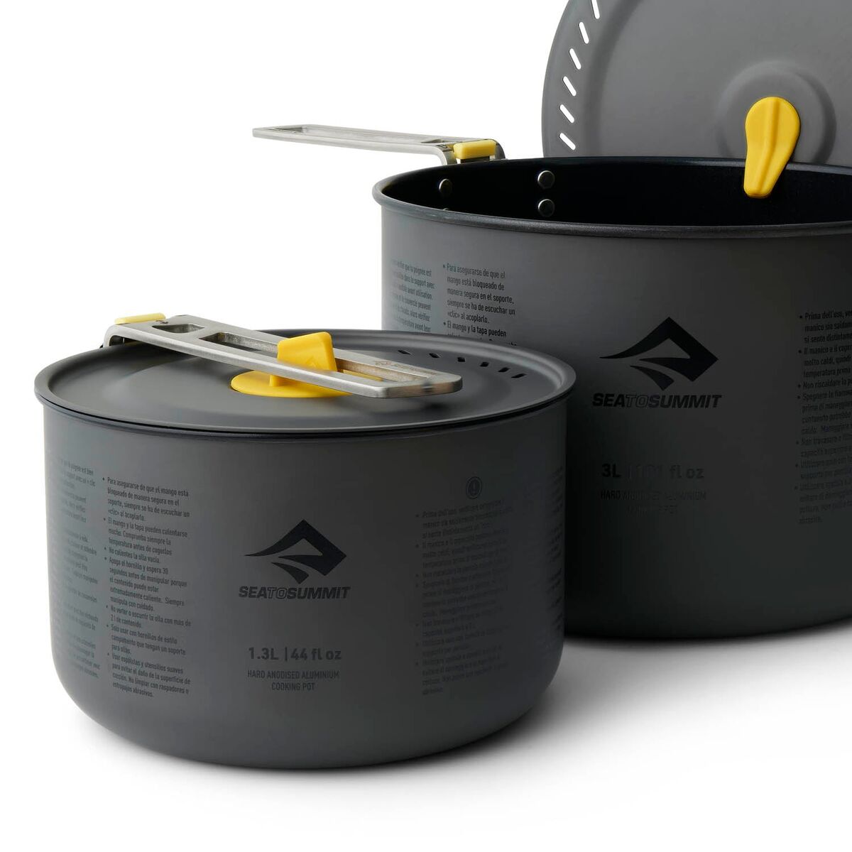 - Includes a 1.3L and a 3L pot to provide plenty of cooking versatility in your lightweight camp kitchen set