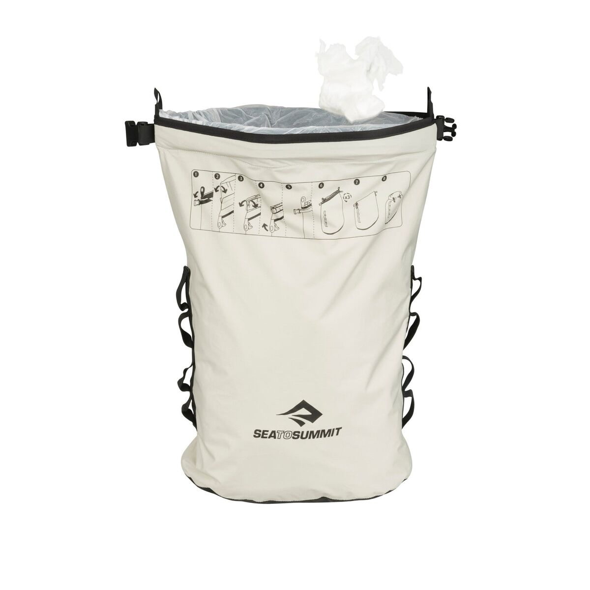 Whether car camping, backpacking, cycle touring or out for a daily adventure, this 10L dry sack is great as a soft garbage container, allowing you to easily clean up after yourself. The unique roll top closure also allows it to be lined with a (biodegradable) trash bag to prevent any leakage while in transit, while the clip-in loops allow it to be hung from a tree or tied to the outside of a pack.