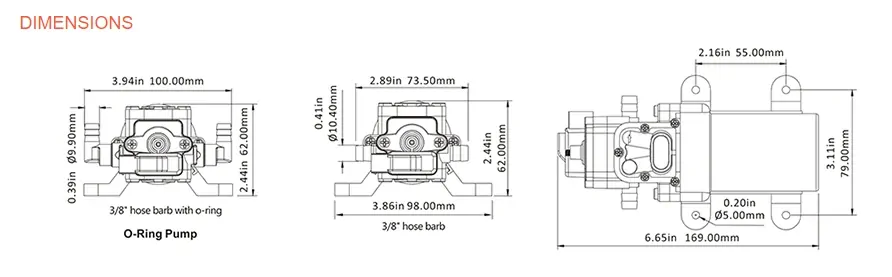 - Inlet/Outlet Ports: 3/8" Hose Barb