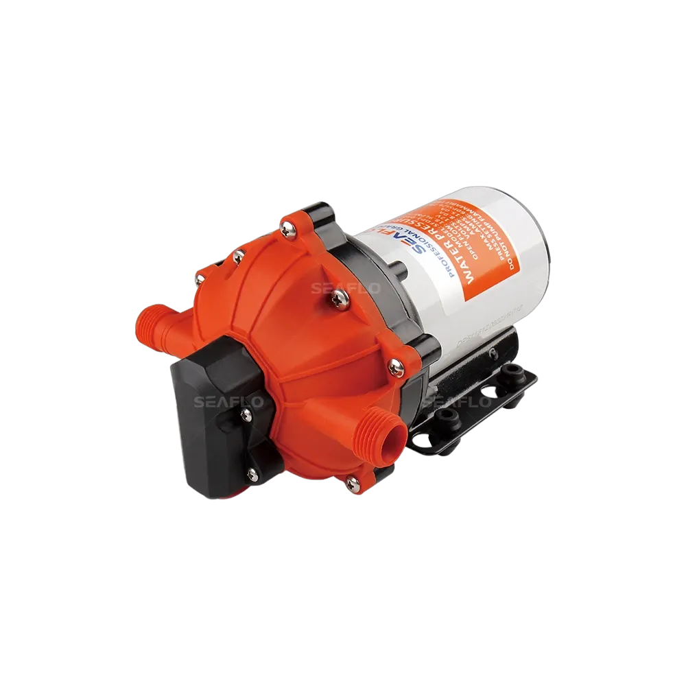 Our heavy-duty washdown kit. The best choice for cleaning boats, fish boxes, anchor wells, dinghies, and other similar applications. This pump boasts a huge 5 GPM capacity. This pump has an on-demand switch, so the pump automatically turns on when you squeeze the spray gun handle. With 70 PSI cutoff, this has the pressure to get rid of stubborn debris. Suitable for fresh and saltwater applications.