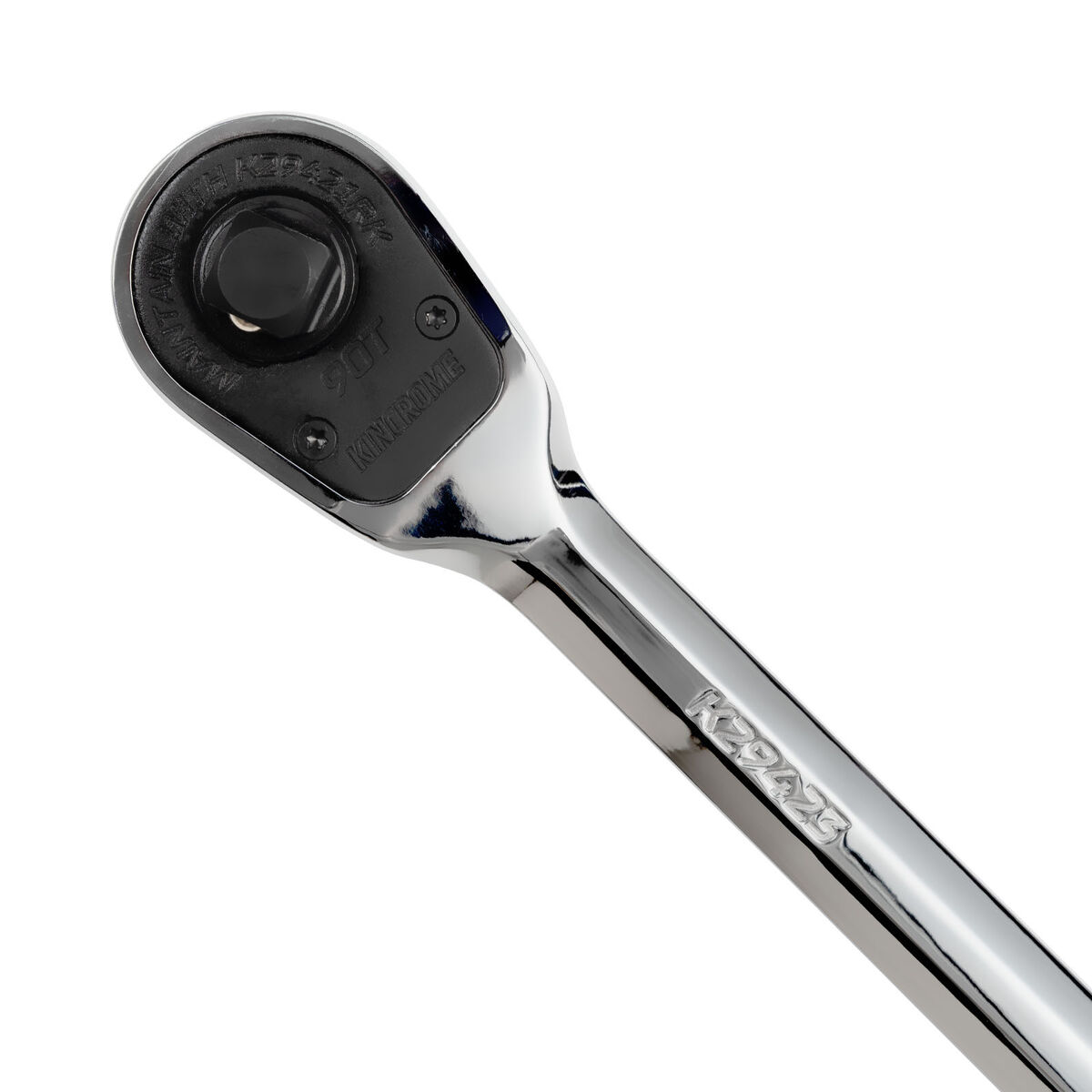 Discover Kincrome’s exclusive, 100% Australian-designed ratchet range—unique to Kincrome and the Australian market—crafted from premium Chrome Vanadium steel with a sleek Chrome Mirror finish and featuring an upgraded 90-tooth ratcheting mechanism for ultra-fine 4° swing adjustments; choose between quick-release button or sealed head designs, benefit from easy end-stop drive-size stamping for instant identification, and find the perfect fit in stubby, standard, long, or extra-long lengths; experience superior ergonomics with the CHOKE GROOVE head for improved grip and a longer swept-handle design for greater leverage, all engineered to meet and exceed DIN standards and proudly designed in Australia for Australian professionals.