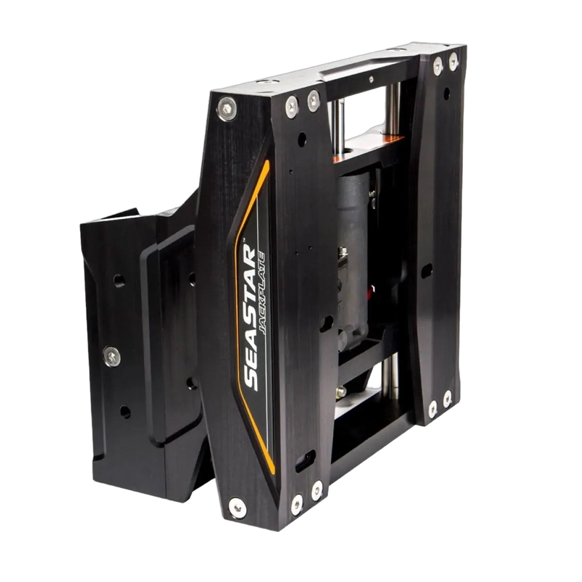 The SeaStar™ Jackplate is one of the sleekest and most durable engine Jackplates available. This essential performance accessory allows for higher speed, gains in fuel economy and the ability to run in shallow water. The all new SeaStar™ Jackplate Features sleek, bold styling that is redefining the look for Jackplates. Available in 4, 6, 8, 10 and 12 inch setbacks, it also has a new, high-speed, hydraulic actuator that lifts engines in 8.5 seconds. The SeaStar™ Jackplate is rated for 300HP engines, and it is designed to maximise engine tilt when used with SeaStar™ steering cylinders.