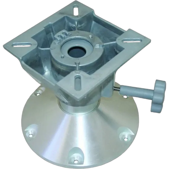 Low height pedestals ideal for mounting on a seat box. Heavy duty 228mm diameter anodised aluminium base with 73mm diameter anodised post.