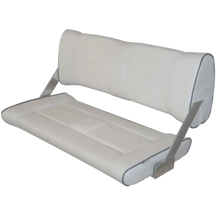 These double (2 person) folding padded and upholstered seats have a double sided back cushion which slides back and forward on aluminium hinges.