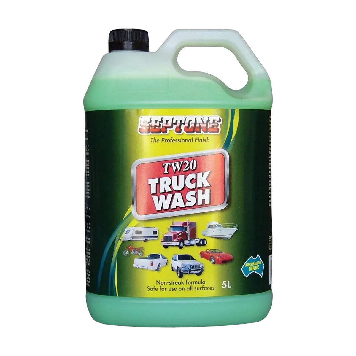 TW20 Truck Wash is a non-toxic, non-caustic, biodegradable heavy duty detergent with a balanced pH and is highly effective in removing dirt, mud, road grime, oil and exhaust soot. It may safely be used to clean paintwork, chrome, rubber, windscreens, fibreglass, aluminium, tarpaulins, vinyl and most washable surfaces. It will not affect paint and, being free-rinsing, will not cause streaking.