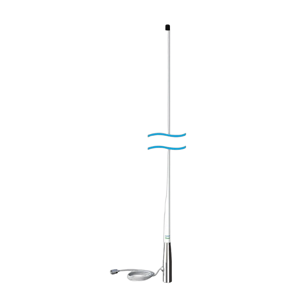 This antenna has been specially designed to meet the broader bandwidth requirements of all popular AIS transceivers. Commercial-grade construction with a mast mounting sleeve.