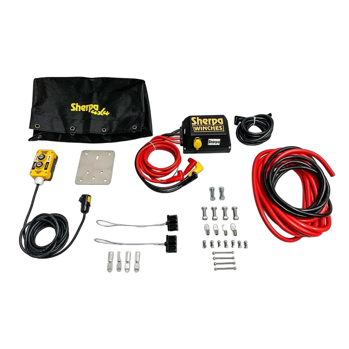 - Simplicity - The Sherpa boat trailer winches are supplied with everything needed to mount and wire the winch at home. Whilst we recommend the services of a auto-electrical to safely run the cables, instructions and components are supplied in the box to make installation a breeze. Generous cabling is supplied in the box to suit large 4x4's such as the 200 series Landcruiser however longer cabling can be provided on request for larger American style of trucks.