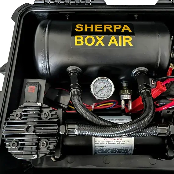 When reliability and performance is key, only the highest quality components can be used and this is exactly what the BOX AIR encompasses. The powerful dual head compressor is designed to reach pressures up to 300 PSI which is far more than most users would ever require. Derating the compressor to 150 PSI means it's working below its maximum design capacity and will last. Beware of cheap knock off units running plastic substandard components that simply aren't robust in extreme conditions. Sherpa use the best components to deliver the greatest performance and reliability.