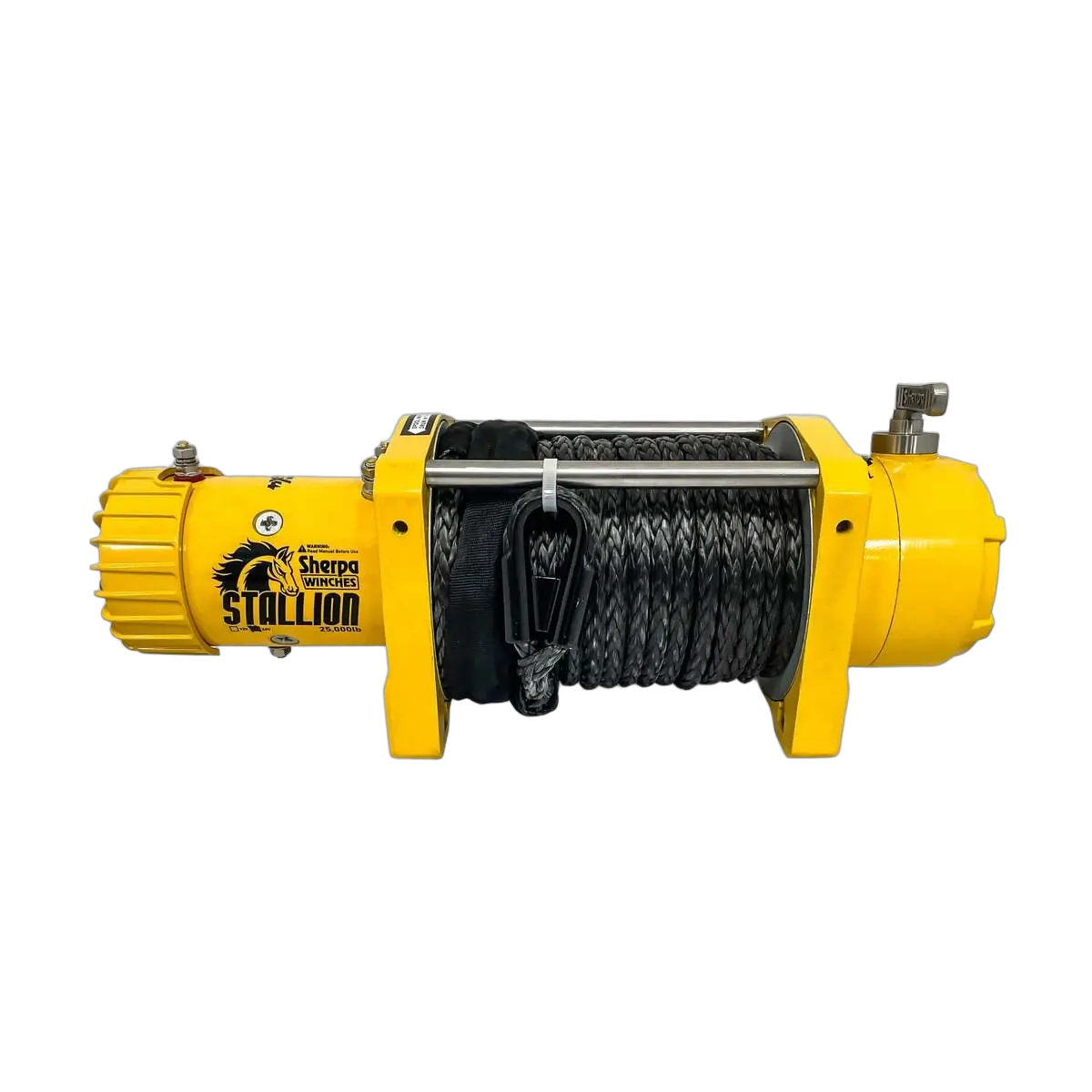 - Powerful- Sherpa 4x4 winches come with massive series wound motors featuring higher amounts of copper in the winding's then others. By specifying the best motors across the entire winch range, you are ensured a more durable winch which can withstand the extreme conditions recovery brings. The Stallion has the new 8.9 hp motor which produces increased torque at lower temperatures meaning you can winch for longer under higher loads. This new motor allows Sherpa to move into new performance figures never seen before.