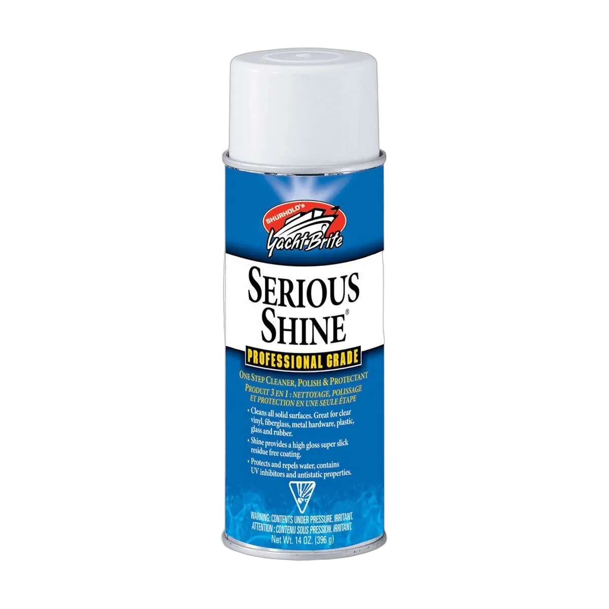 Shurhold Serious Shine Aerosol 396g Cleans polishes and protects almost any solid surface in one step without greasy artificial residue Also contains U V inhibitors and anti static properties further protecting all types of surfaces Cleaning uses Hull Cockpit Cabin Vinyl coverings Fibreglass surfaces
