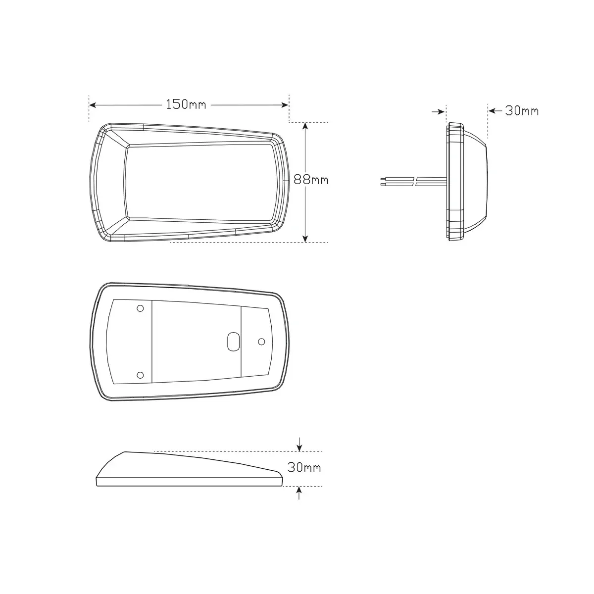 Left or right-hand mountable. Surface mount bracket onto flat surface horizontally to the ground using three screw points, run wires through back and clip lens into place.  Suits M2-3, and N1 class vehicles over 6 meters. All N2-N3 class vehicles. Please refer to ADR 13/00 for mounting instructions.