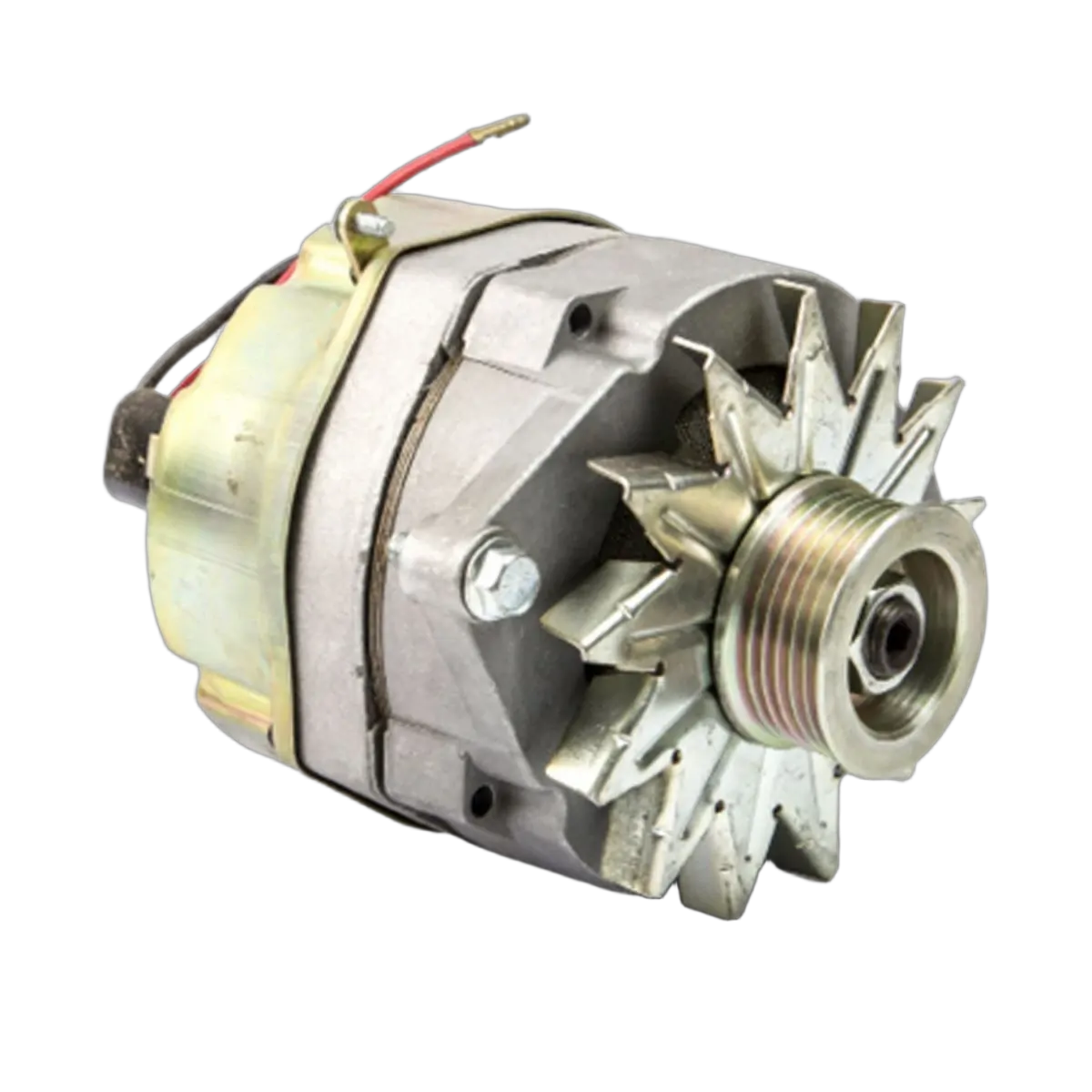 Replaces Mando, Motorola and original equipment Delco. Uses same electrical connections and mounting method. Equipped with fan and serpentine drive pulley.