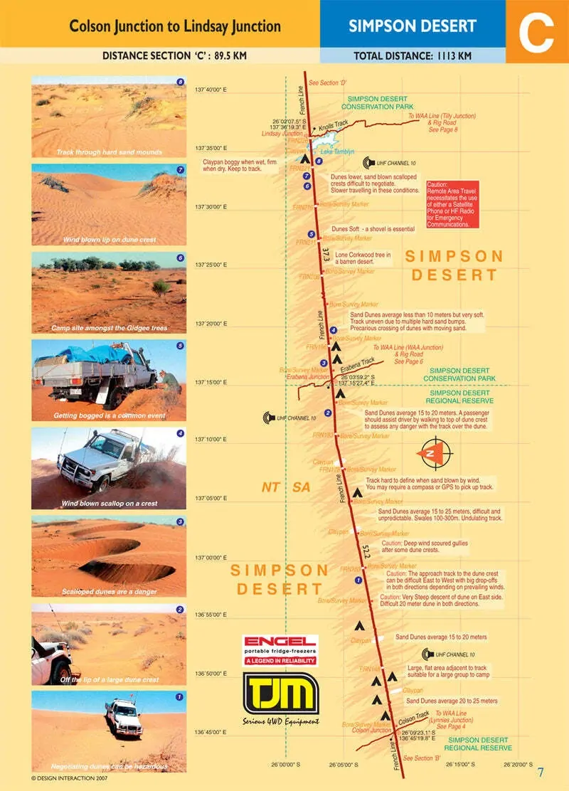 The Simpson Desert is a hazardous and remote location, yet attracts four wheel drivers and motorbike riders by the hundreds annually. The first successful crossing was made by Ted Colson in 1936 but was much later, in 1962, before the first motorised desert crossing was made by geologist Reg Sprigg with his family. Today, 4WD enthusiasts, adventurers, tourists and those seeking the challenges of the desert, traverse the 1100 sand dunes and many other tracks. Wild camels and dingos roam throughout the area with eagles overhead and large perentie seen on rare occasions. The Simpson Desert offers an insight into some of Australia's toughest red sand dune country, however, such a trip should never be taken lightly. Travellers should be well prepared for such an adventure and must have adequate 4WD knowledge and recovery skills.
