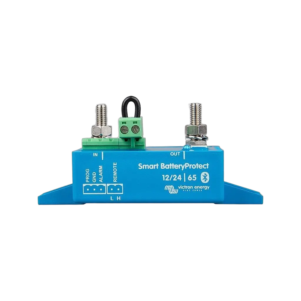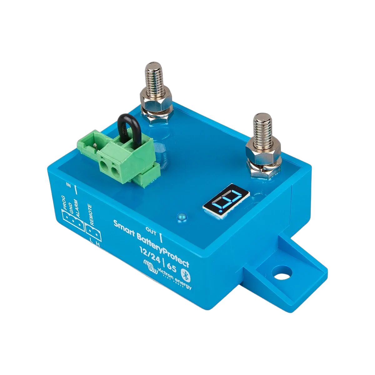 The Smart BatteryProtect disconnects the battery from non-essential loads before it is completely discharged (which would damage the battery) or before it has insufficient power left to crank the engine. The on/off input can be used as a system on/off switch.