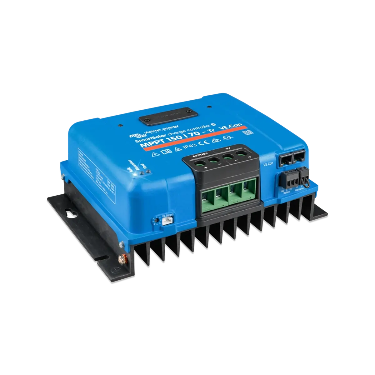 Control your charger remotely- The MPPT VE.Can SmartSolar charger can be remotely controlled and configured over Bluetooth via the VictronConnect App. This allows device set-up, management, and at-a-glance information, such as battery voltage and current, PV voltage and current, and historical data.