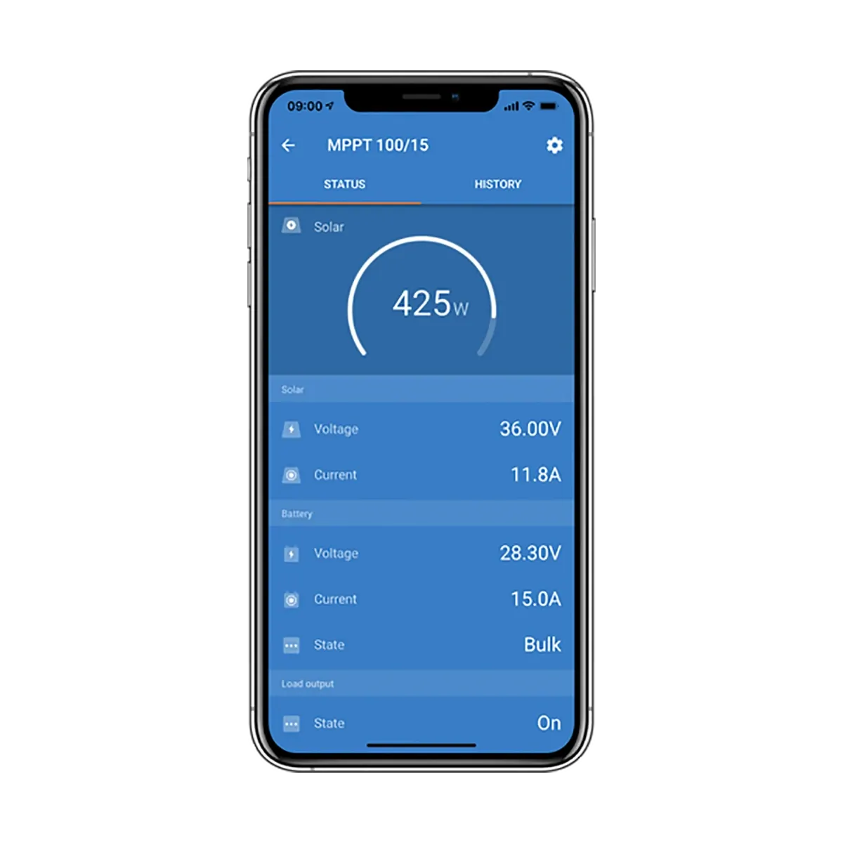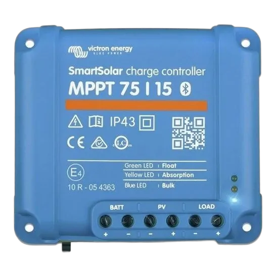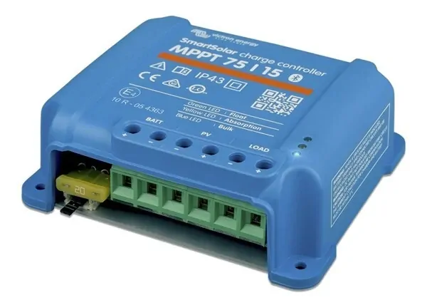 A highly efficient and intelligent solar charge controller designed to charge and maintain 12V or 24V lead-acid or LiFeP04 batteries from 12/24V solar panels. Thanks to its ultra-fast MPPT controller, programmable battery management and innovative tracking algorithms, the charger gets the most out of your solar panels, even during cloudy weather, with charging currents up to 15A. The adaptive 3-stage battery charging includes bulk, absorption and float to charge your battery as quickly as possible and then keep the battery in optimum condition. The charge algorithm can be changed to 8 pre-set algorithms or fully programmed to suit your application. In addition, equalisation or BatteryLife modes can be enabled to maximise the life of your battery. A handy DC load output port automatically disconnects any connected devices at a predetermined voltage to avoid over-discharging and possibly damaging your battery. Configure and monitor the solar charger and view real-time or historical solar and battery data from your Bluetooth® enabled Smartphone, tablet or computer. Safety features include over-current, over-temperature, over-voltage, reverse battery or PV polarity, and output short circuit protection.