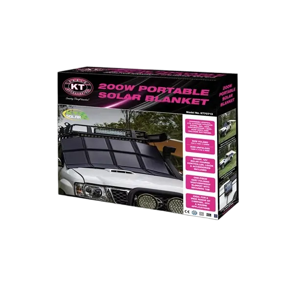KT Solar Blankets are a compact, light-weight solution to your solar needs. Ideal for camping, 4×4 and marine applications, the KT Solar Blankets are manufactured from a solar cell that is cast from silicon. These cells are more efficient in producing power than most other panels, so the size of the panel is smaller yet produces a greater power output