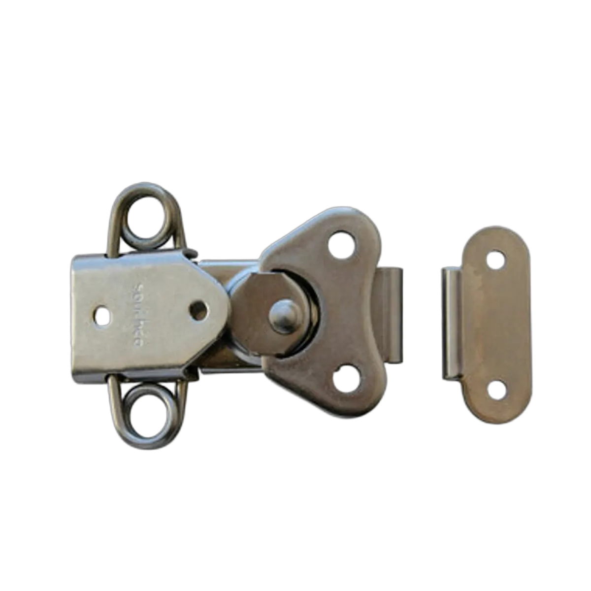 Link Lock Rotary Action Catches - Stainless Steel Catch Rotary Spring Loaded S/S 60mm 193328 Positive twist lock Action catches. Twist handle folds flat when not in use. Supplied with keeper. Ideal for lockers, hatches and in-line covers. All stainless steel construction. 193328 incorporates a tension spring to maintain fastened pressure and/or allow for movement.2723
