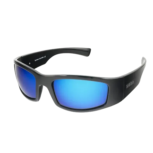 The vibrant Ice blue mirror overlays a natural Stone grey base tint Crown Glass lens. We use real metallic particles in our Ice Blue Mirror lenses as only real metallic particles reflect bright light and heat away from your eyes. This actually creates a cooling effect during periods of intense light and reduces eye fatigue.