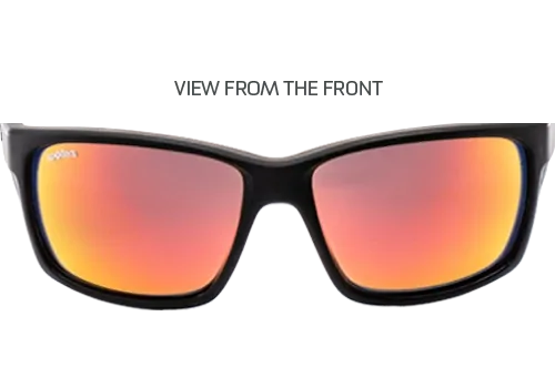 On the front surface is a vibrant Ignite Mirror constructed from real metallic particles. The real metallic mirror reflects bright light and heat away so your eyes stay cool and relaxed all day. The view from the front is what people will see when they look at you while wearing your eyewear.