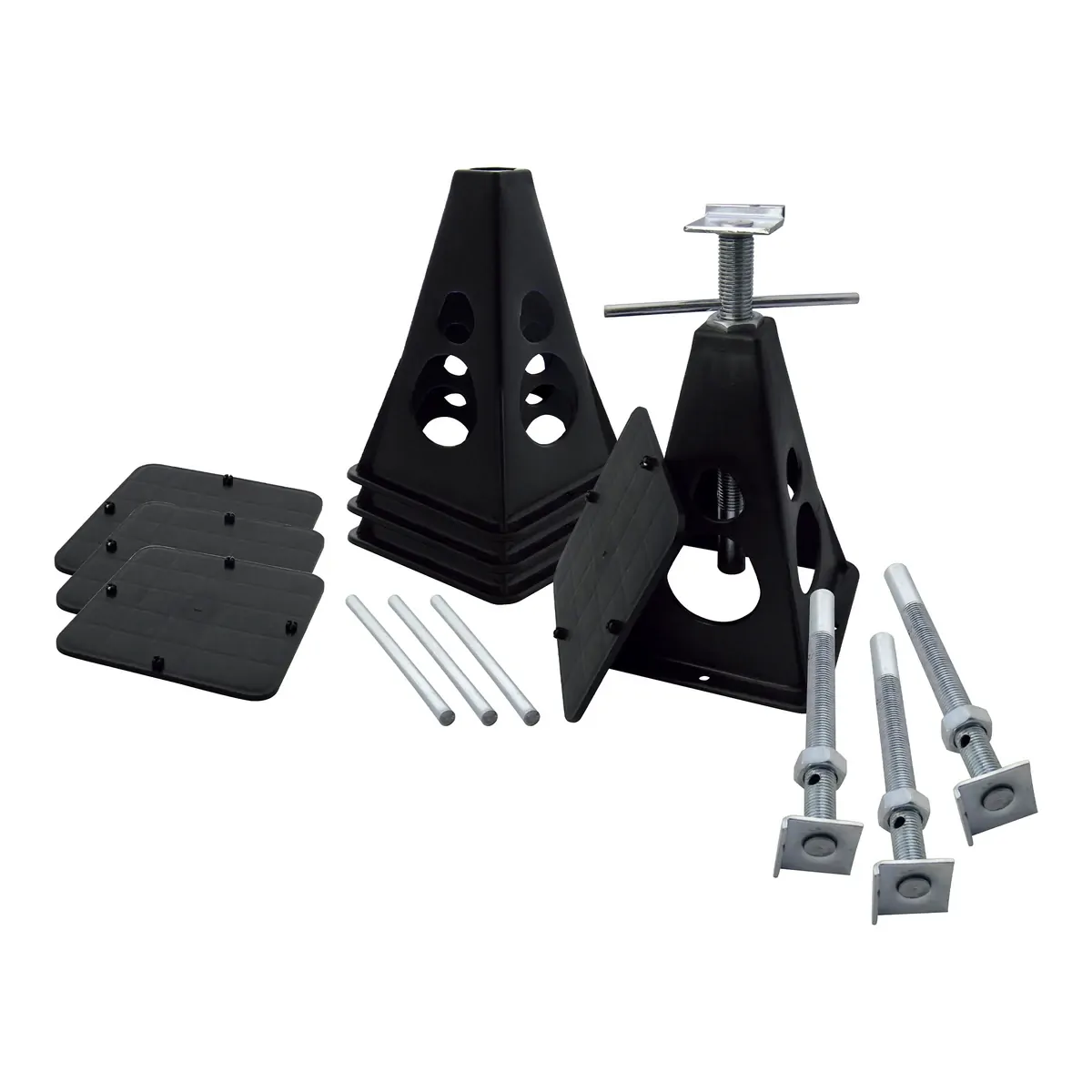 - Includes 4 heavy duty stands and 4 anti-sink plates for added stability