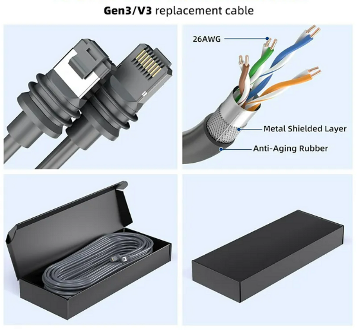 - Cable Type: Specialised Starlink GEN3 Standard connectivity cable - 26AWG cable with metal sheilding, anti-aging UV protected rubber coating
