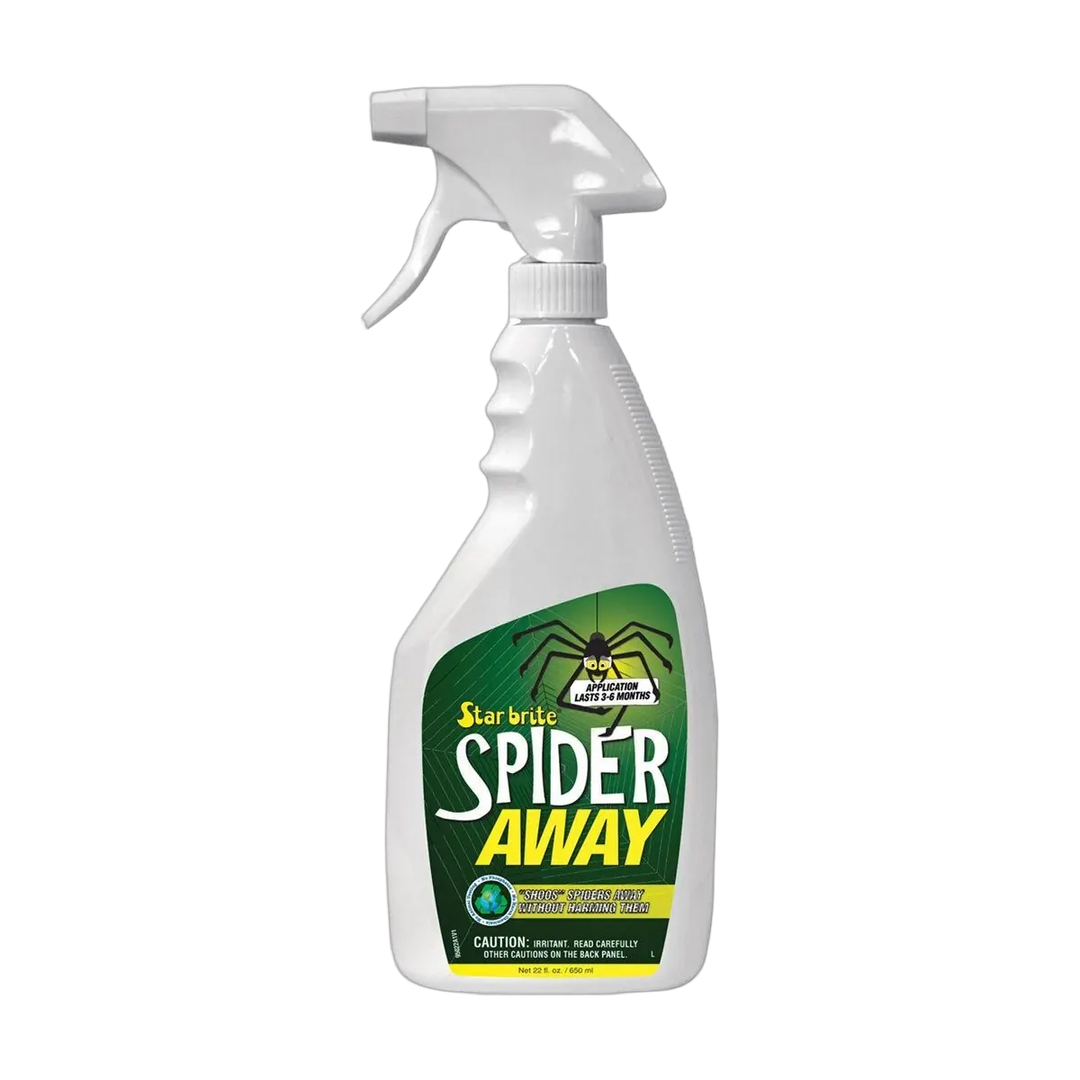 Starbrite Spider Away is a non-toxic, highly-effective way to make spiders leave an area. Not a poison, it is safe for use around people and pets. One application will make spiders leave the treated area, preventing messy webs or droppings. Safe for use on fiberglass, vinyl, plastic, painted surfaces, metal, wood or glass.