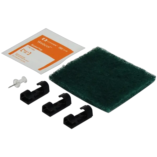 • Kit includes site preparation materials, and 3 adhesive cable clips.