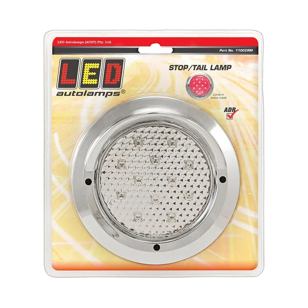 Chrome Series : Multi 12-24Volt Stop/Tail Lamp 12 Leds 148Mm Round X 80Mm Including Grommet And Chrome Flange. Adr Approved. Blister Packed