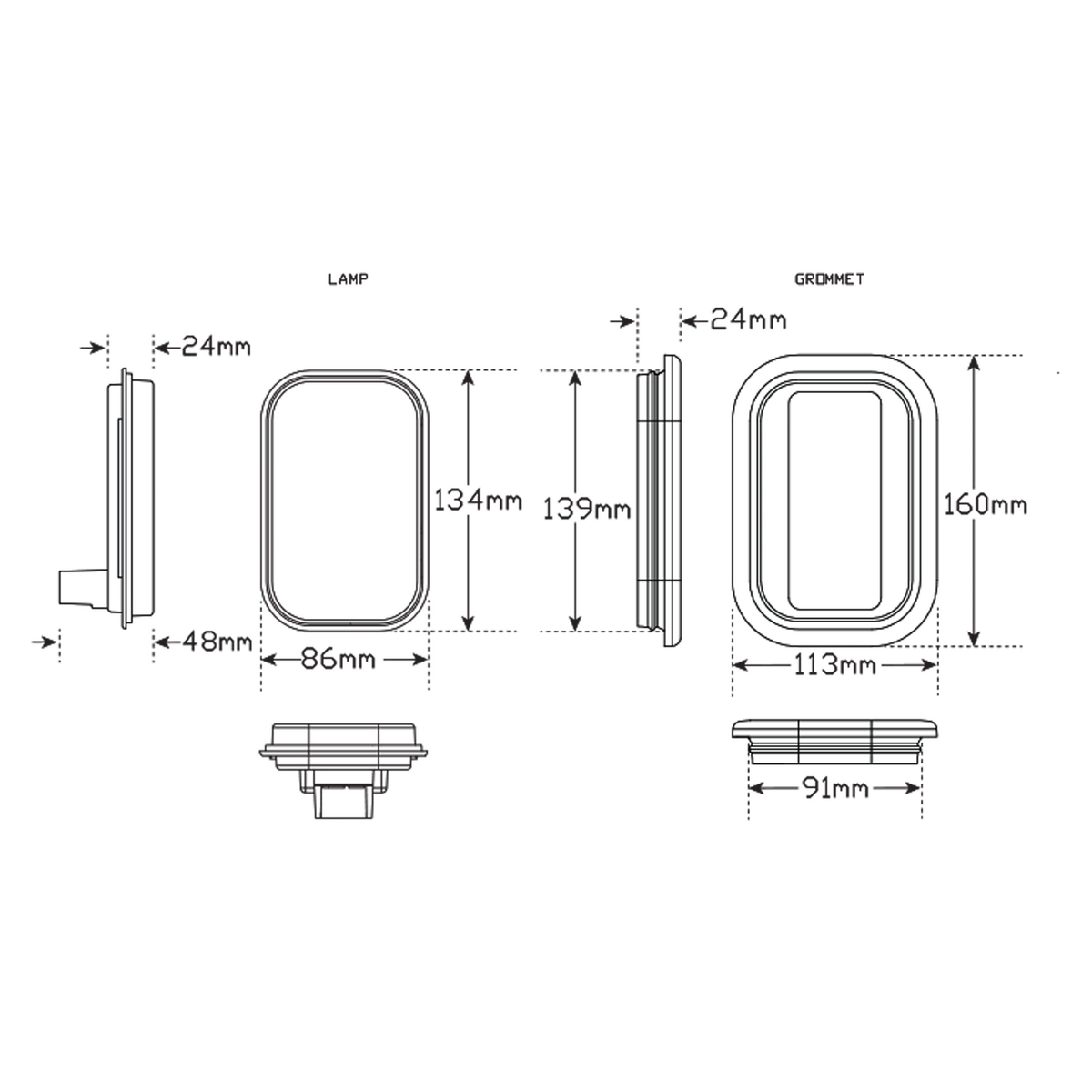 Retro fit lamps. If new installation, fit grommet or flange into cutout (cut out 139 x 91mm), plug wire into lamp and run through back then push into grommet/flange. Please refer to ADR 13/00 for mounting instructions.