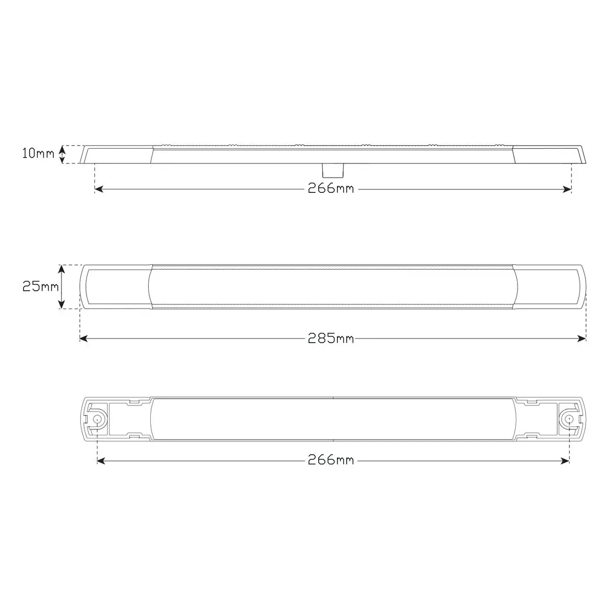 Slimline/Low Profile, Centre High Level Stop Light With Black End Caps, 12 Volt, 285 X 25 X 10Mm, Ece Approved, 5 Year Warranty