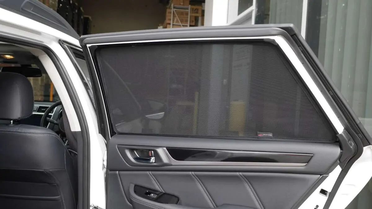 Note: Our custom sun shades block out a significant amount of light and UV rays that enter from the front windscreen, however due to the angle of the front windscreen and additional sensors or different mirror shapes/sizes available for different models, there may be slight gaps around your rear-view mirror or sides to allow the sun shade to fit.