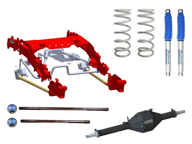 The Superior Engineering LandCruiser 76 coil kits can be supplied to suit a wide range of applications. We have packages and options from – VSB / State approved kits that use your factory housing in either Bolt-In or Weld-In to our bigger kits that can be Federally approved. Our Superior Outback Tourer™ kits allow a metric equivalent or imperial 35" tyre, 4" suspension lift kit, 3.8-tonne GVM, Wide-Track Chromoly Diamond Diff Housing.
