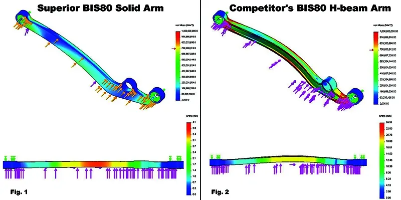Fig. 1 shows the Superior Arm deflecting only 4.1mm under load with real-world load points.
