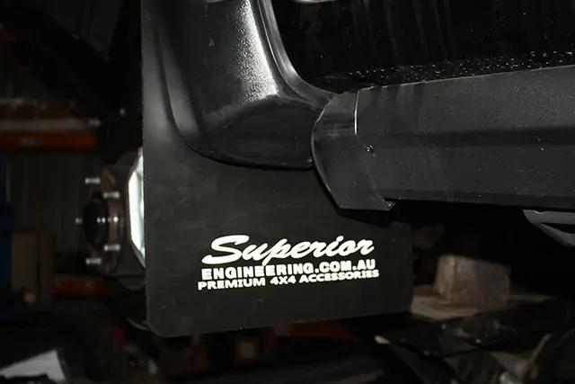 The Superior Premium Mudflaps Suitable for Toyota LandCruiser 200 Series are approximately 120mm longer than OE Mudflaps when installed.
