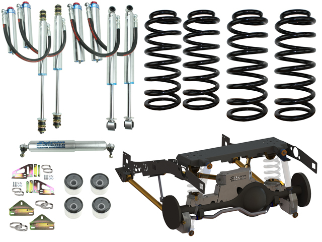 This kit is designed to use Toyota LandCruiser 80 Series Coils and Nissan Patrol Rear Shocks, which gives a great range to choose from.