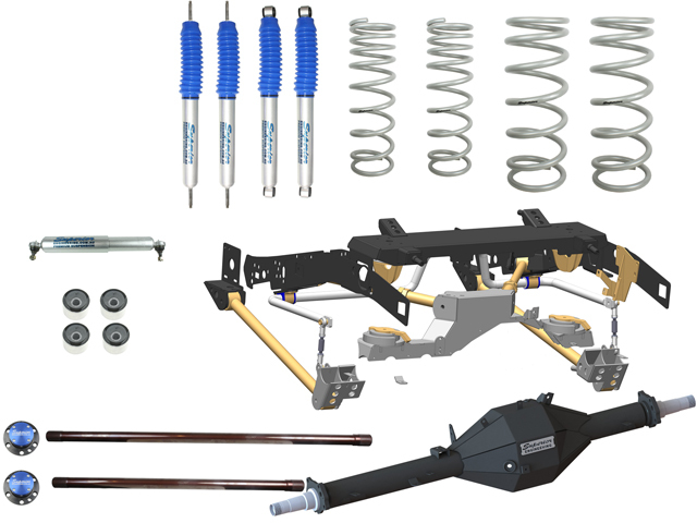 The Superior Engineering LandCruiser 79 coil kits can be supplied to suit a wide range of applications. We have packages and options from – VSB / State approved kits that use your factory housing in either Bolt-In or Weld-In to our bigger kits that can be Federally approved. These larger Federally approved kits allow a metric equivalent or imperial 35" tire, 4" suspension lift kit, 4-tonne GVM, Wide-Track Chromoly housing.