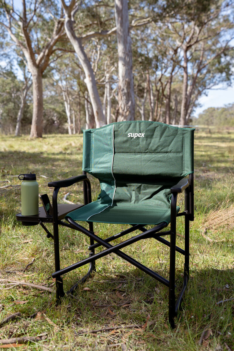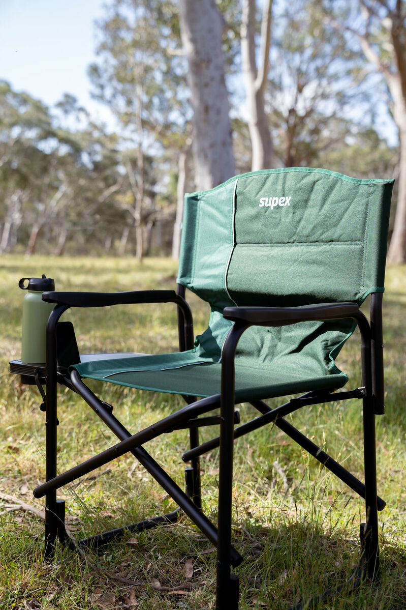 Relax in style in a lightweight, polished aluminium directors chair. Whether you are camping, caravanning or fishing this deluxe chair will afford you comfort and practicality whenever you need it.