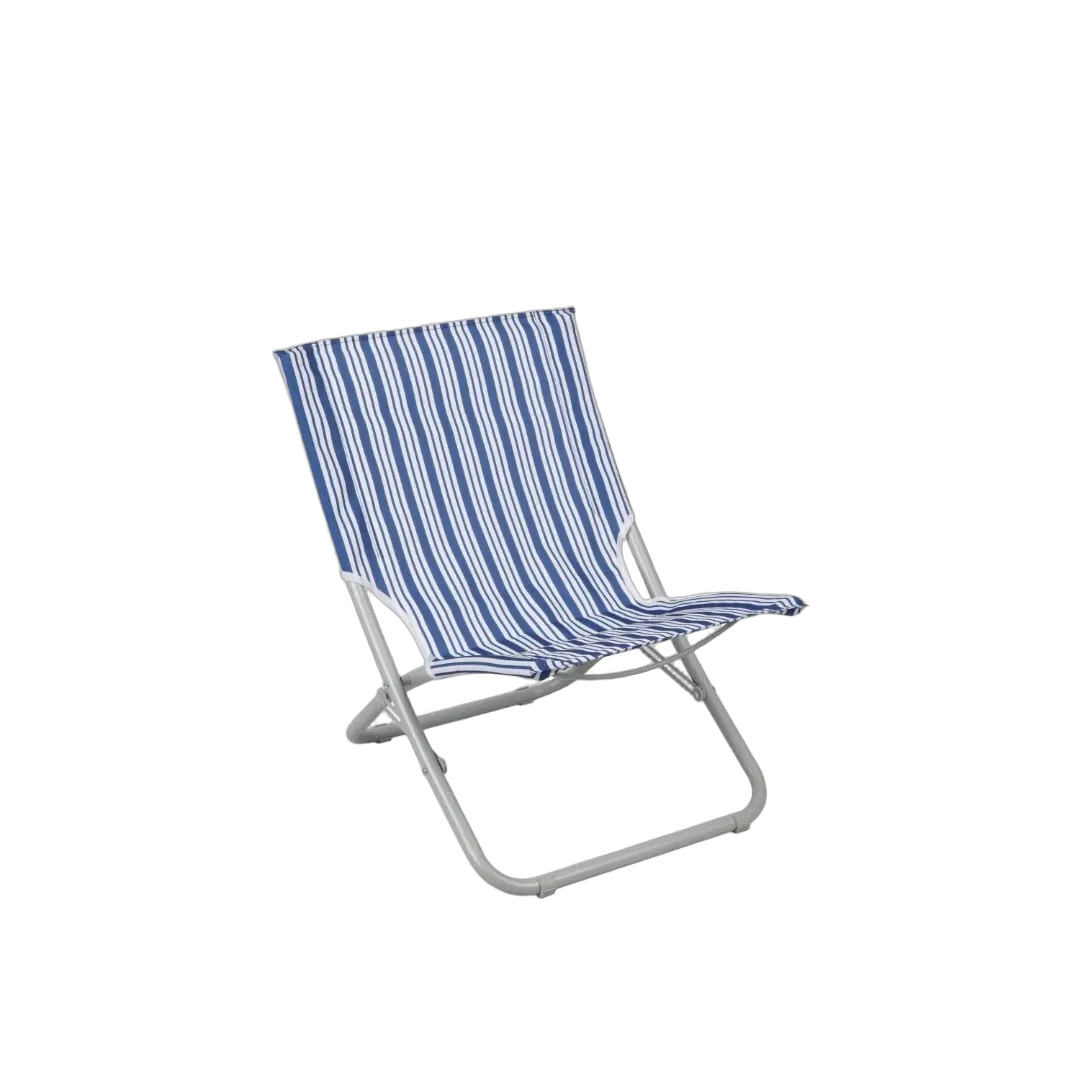 Blue & white striped collapsible beach chair.