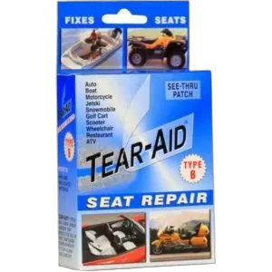 TEAR-AID Type B Blue is specifically suited for repairing vinyl seat material, as you might find on bicycles and boats.