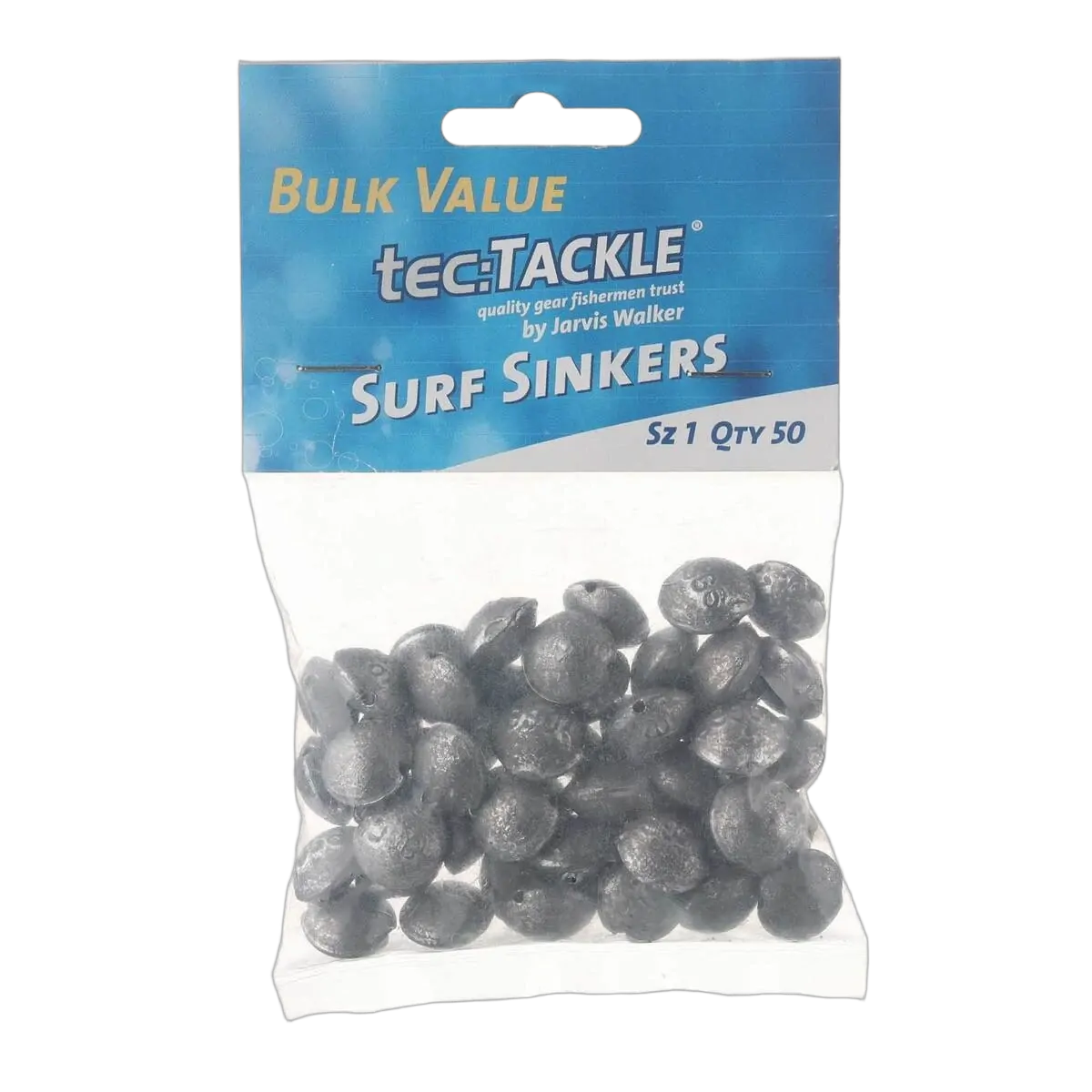 Surf sinkers are popular with beach anglers using running sinker rigs. The squat convex disc shape is excellent for casting distance, while offering good resistance to rolling in strong surges or wash. They're ideal when you need extra holding power to keep your bait in the best position for longer.