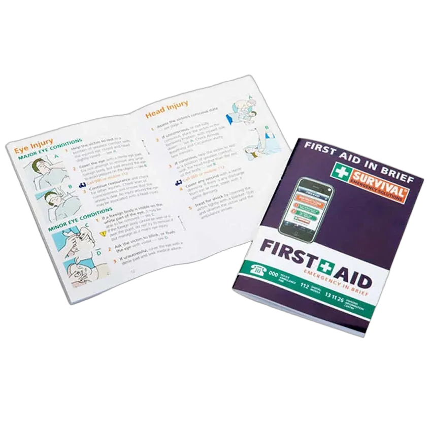 Included as an essential element in SURVIVAL First Aid KITs, the First Aid in Brief Booklet is now available as a standalone first aid resource.