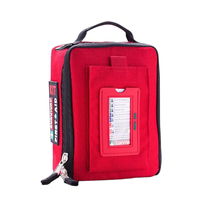 - Practical essentials such as shears, tweezers, emergency blanket, adhesive tape, eye cup and CPR kit.