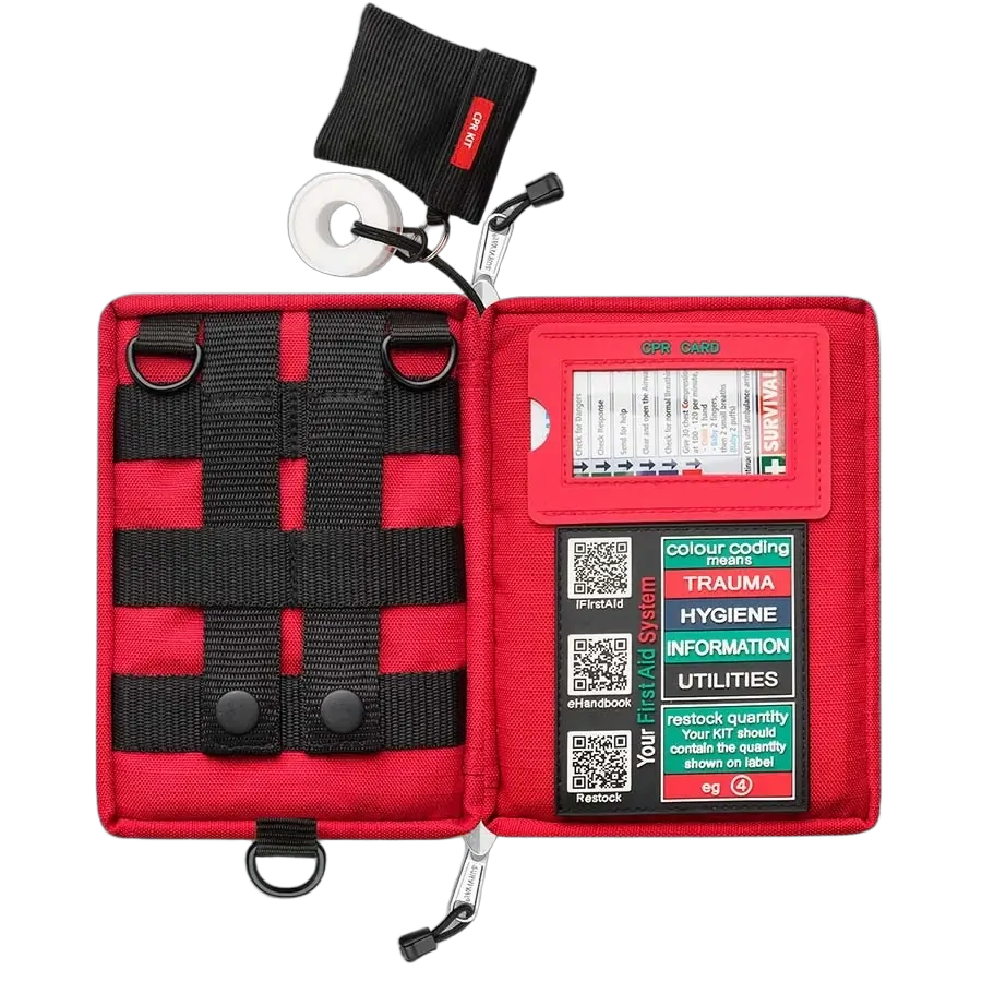 Designed to be portable enough to be with you on the go, this compact first aid kit weighs just under 500 grams, yet still contains a SMART Snake Bandage and Pocket CPR KIT , as well as gloves, saline, antiseptic wipes and a resuscitation shield, shears, a first aid instruction booklet, tweezers, wound closures and lots more.