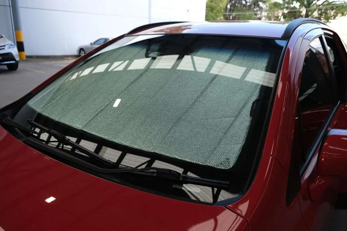 Note: Our custom sun shades block out a significant amount of light and UV rays that enter from the front windscreen, however due to the angle of the front windscreen and additional sensors or different mirror shapes/sizes available for different models, there may be slight gaps around your rear-view mirror or sides to allow the sun shade to fit.