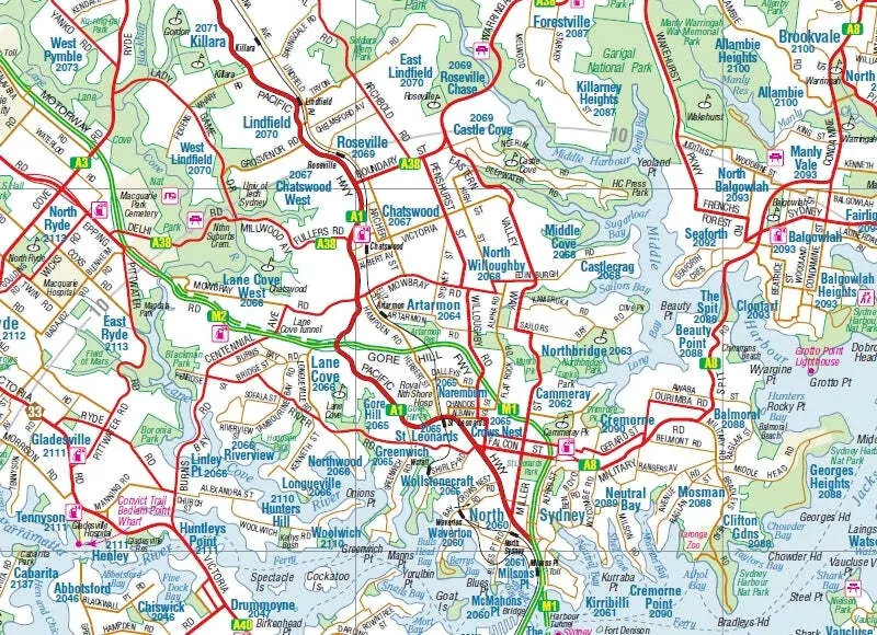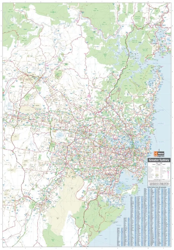 Sydney CBD, City & Suburbs Map A map that has the greater Sydney region (1:100,000) on one side and a lower scale overview map of the city and surrounding regions on the reverse. Also included are maps of the Sydney CBD, the city's rail and ferry networks and a complete index.