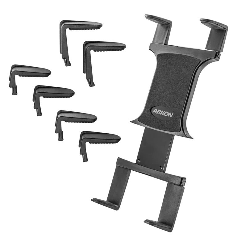 Our Arkon Tablet Mount can fit most tablets (7” to 18.4″ screen sizes). Mounts for phones are available and sold separately. Included with the holder are 8 support legs (4 short and 4 longer versions) that can be customized based on device size. The Arkon Tablet Mount also includes a quick-release zip-tie which can be fixed securely onto the Seavu Reel, Pole, or any boat rail 15mm to 50mm in diameter